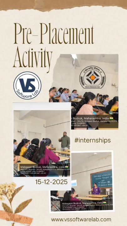 VS Software Lab successfully conducted a Pre-Placement Activity for TY B.Sc. Computer Science, TY BCA, and FY M.Sc. Computer Science students at Shiv Nagar Prasarak Mandal’s College of Commerce, Science and Computer Education, Malegaon Bk, Baramati.
